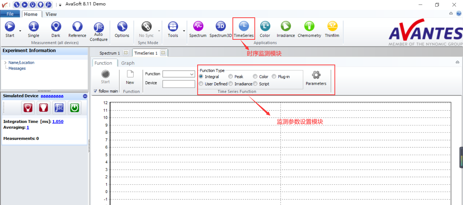 要監(jiān)測激光波長隨時間的變化,只需要在軟件中打開 TimeSeries模塊,設(shè)置希望監(jiān)測的參,就可以看到激光波長,峰值,強(qiáng)度等設(shè)置參數(shù)隨時間變化的曲線了。軟件還能夠允許您多窗口同步工作,同時監(jiān)測多個參數(shù)隨時間的變化。