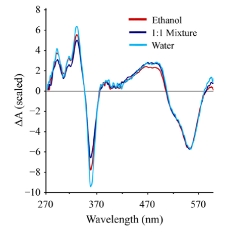 另外一個有意思的應(yīng)用是密歇根大學(xué)(the University of Michigan)發(fā)表的關(guān)于氰鈷胺激發(fā)態(tài)在生物系統(tǒng)中的作用[3]。如圖6所示,他們使用Avantes的光譜儀測試不同溶劑對電子躍遷的影響。研究小組使用這些實驗數(shù)據(jù)驗證了他們研發(fā)的復(fù)雜量子力學(xué)模型的作用,并為進一步研究可以用作作抗維生素、光活性藥物傳遞劑和原位產(chǎn)生烴基自由基的鈷胺素輔酶因子奠定了基礎(chǔ)。