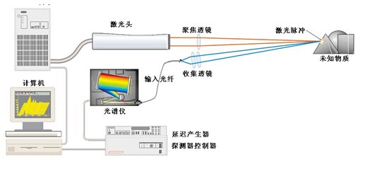 激光誘導(dǎo)等離子光譜(LIPS)或者更常見的叫法激光誘導(dǎo)擊穿光譜(LIBS)是一種原子發(fā)射光譜,它使用脈沖激光器作為激發(fā)源。激光脈沖(典型值10 ns)聚焦到被測物體的表面,使被測材料表面的激光功率密度超過1 GW/cm2。在如此之高的激光功率密度作用下,被測材料表面就會有幾微克的物質(zhì)被噴射出來同時材料表面還會產(chǎn)生壽命很短但亮度很高的等離子體,其瞬間溫度可達(dá)10,000 攝氏度 。冷卻過程中,處于激發(fā)態(tài)的原子和離子從高能態(tài)躍遷到低能態(tài),并發(fā)射出具有特定波長的光輻射。探測系統(tǒng)可以使用高靈敏度、高分辨率、多通道光纖光譜儀AvaSpec-2048-X進(jìn)行測量,每個通道均有2048像素線陣CCD探測器。采集到的200-1050 nm寬光譜數(shù)據(jù)傳送給應(yīng)用軟件進(jìn)行分析。
